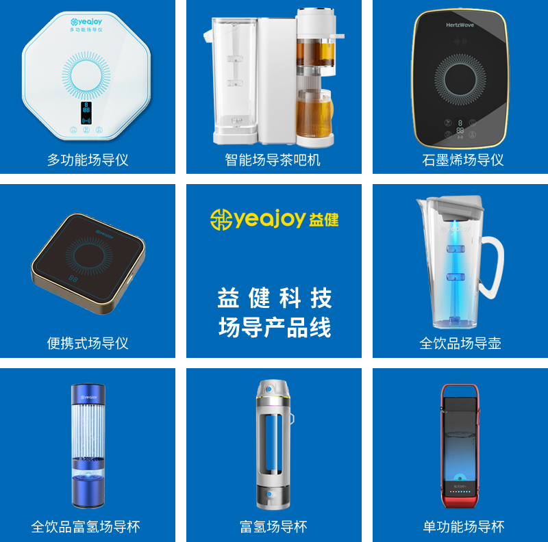 一直深耕大健康领域的益健科技,始终坚持以 “原创级康养器械研产商” 为定位,在技术和产品双重方面上不断创新,也因此出品了多款多系列特色产品,成功帮助众多客户通过产品差异化竞争力,实现了营销赋能。场导仪作为益健科技旗下众多产品线之一,从第一代MRET赫兹低频共振活水仪到如今的石墨烯多功能场导仪,持续迭代核心技术,目前已形成场导仪、场导壶、场导杯、场导茶吧机的全系列产品阵营。